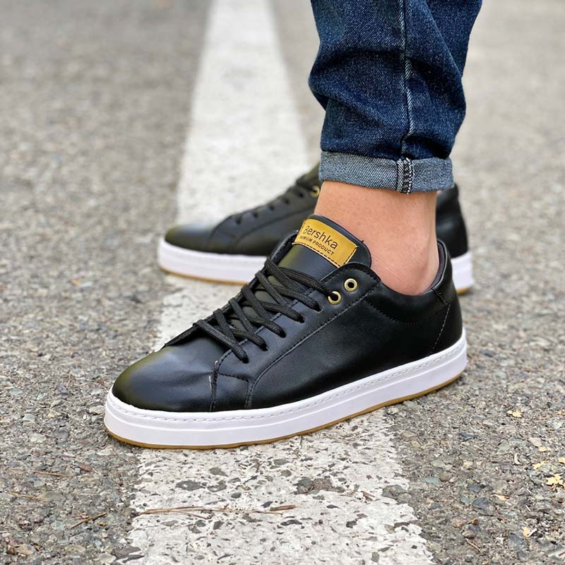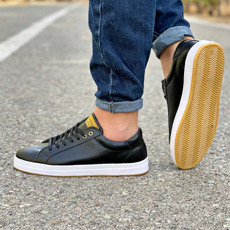 خانه مردانه کفش کتونی راحتی و روزمره مردانه ونس برشکا مشکی زیره طلایی مردانه کفی طبی کد 1063